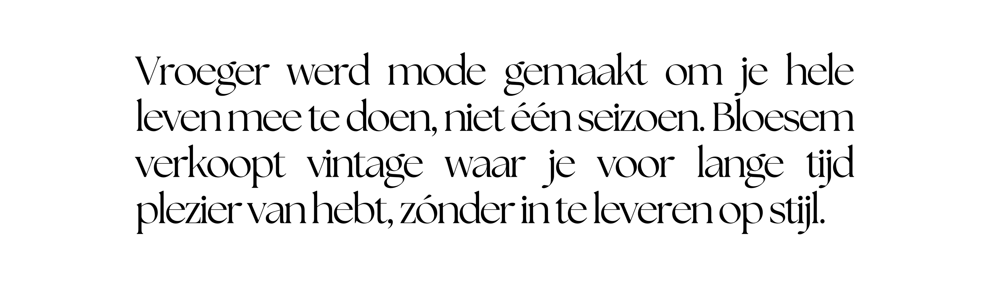 De fashion industrie is tegenwoordig nét het wilde westen. Wie kun je vertrouwen? Hoe weet je of de kwaliteit is zoals je hoopt? En blijft dat dan ook zo? Inmiddels ruim 5 jaar geleden, besloot ik dat mijn talent om écht goede vintage stukken te sourcen maar eens ingezet moest worden voor anderen. En dat is hoe Bloesem ontstond. Vintage voor moderne tijden. Items zonder een oubollige uitstraling, maar mét de kwaliteit van vintage.