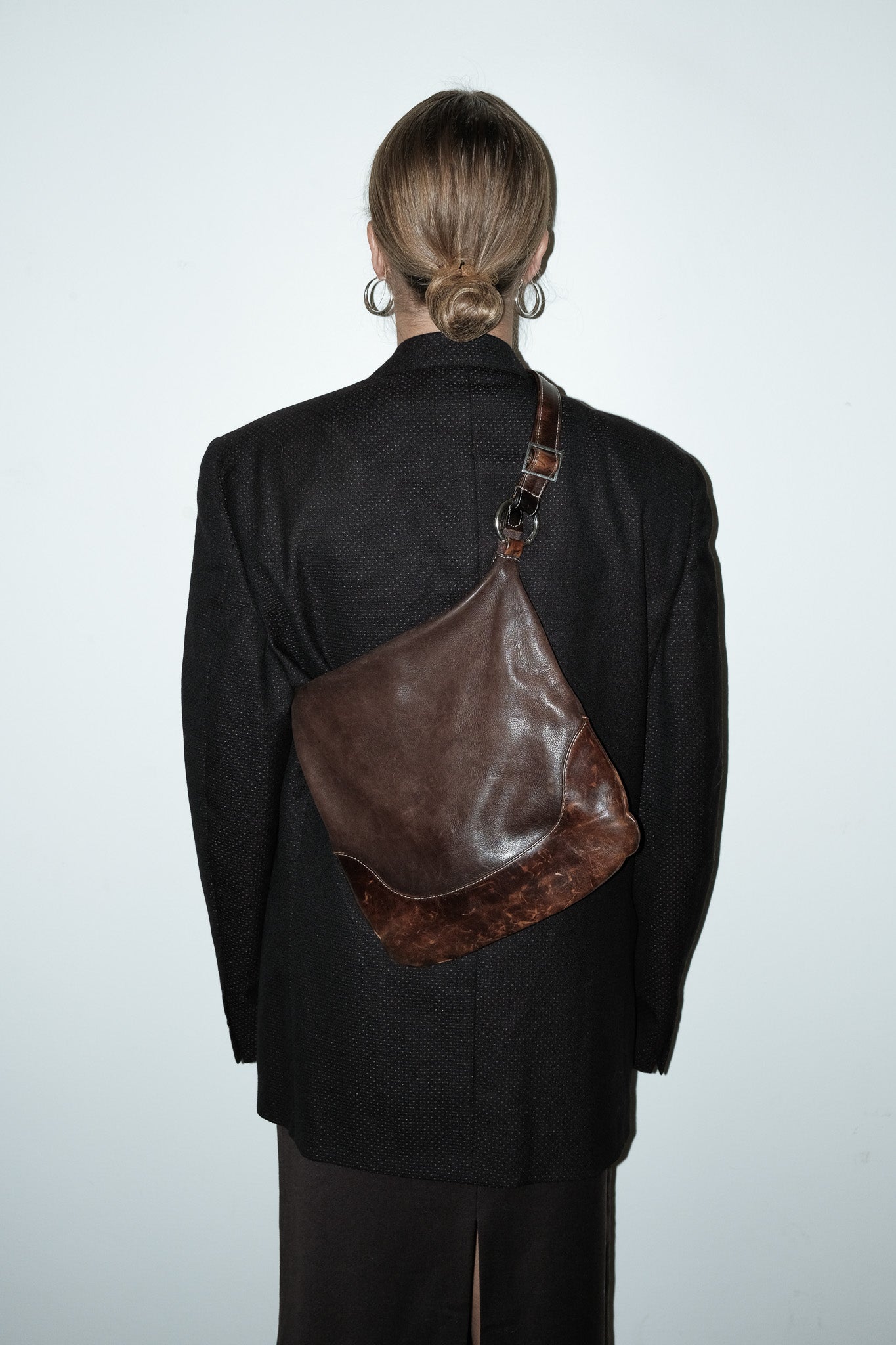 vintage donkerbruine leren crossed-body tas met verstelbaar hengsel