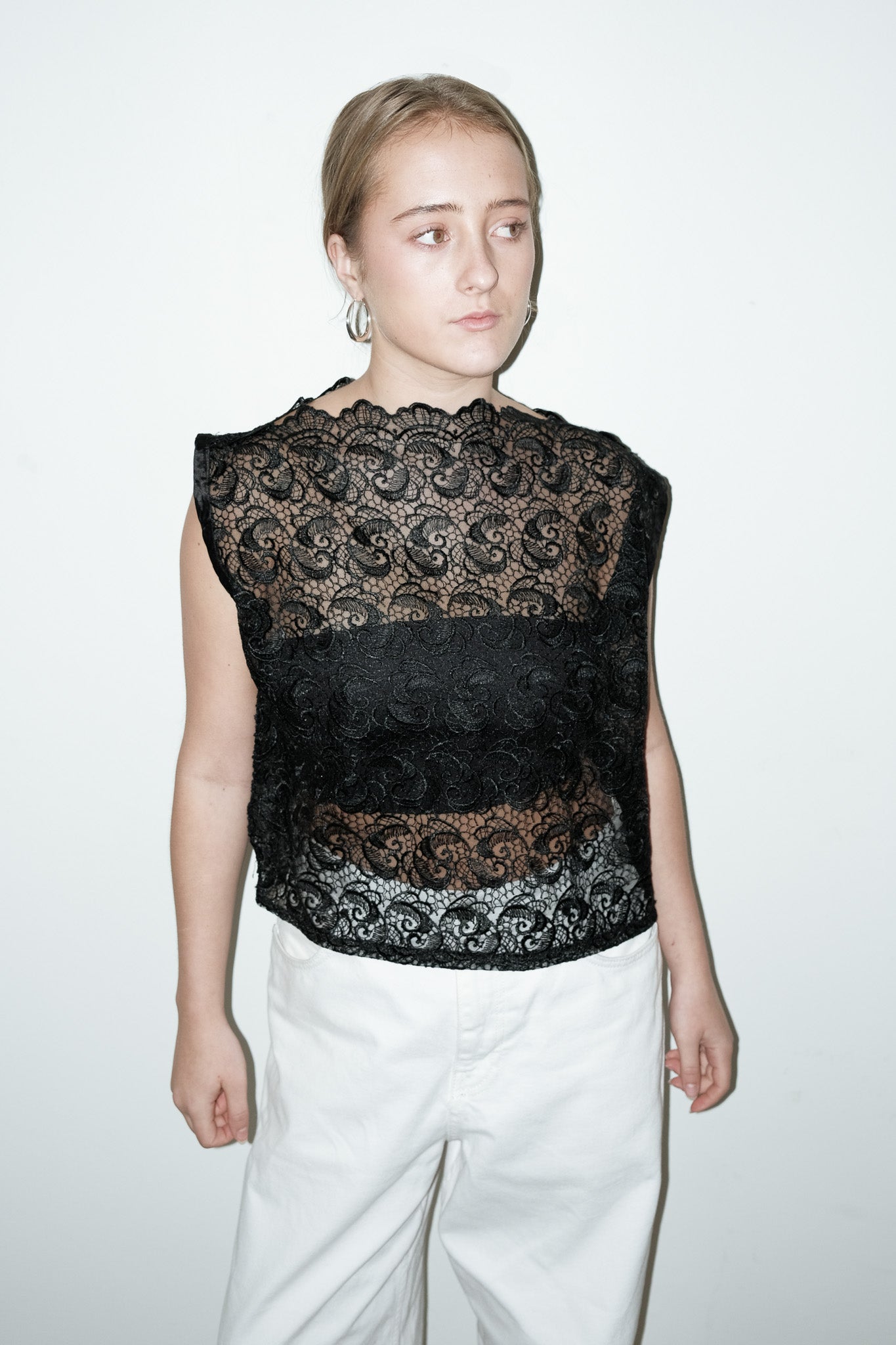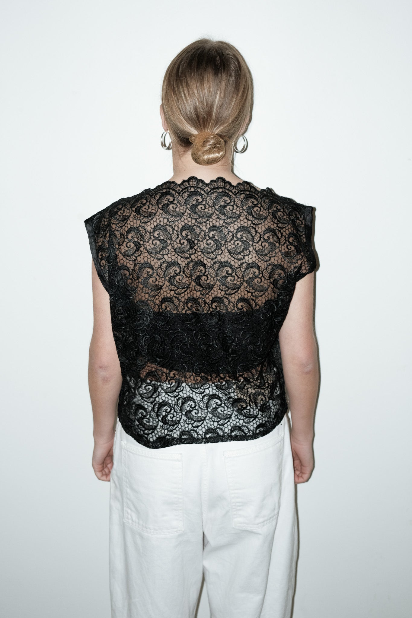 vintage zwarte kanten opengewerkte top, ondertop niet inclusief