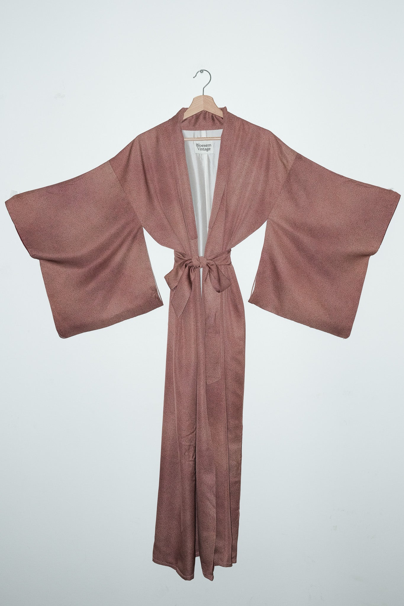 vintage traditionele japanse kimono, reworked tot luxe kamerjas. de kimonos is van 100% zijde van de hoogste kwaliteit en heeft een traditionele kimono mouw. heerlijk om thuis in te vertoeven.