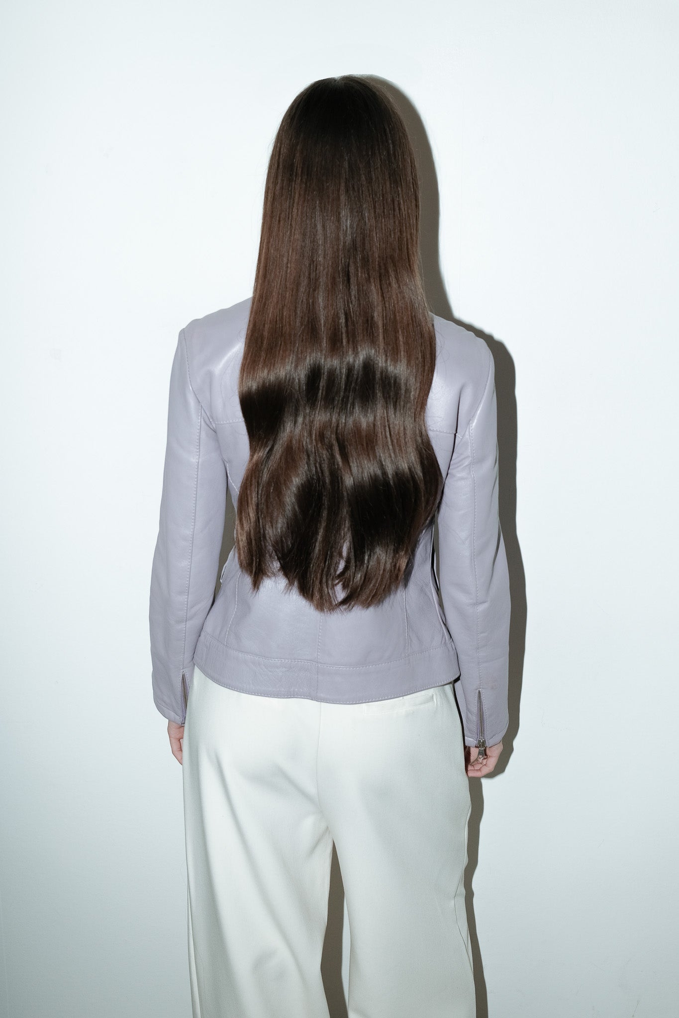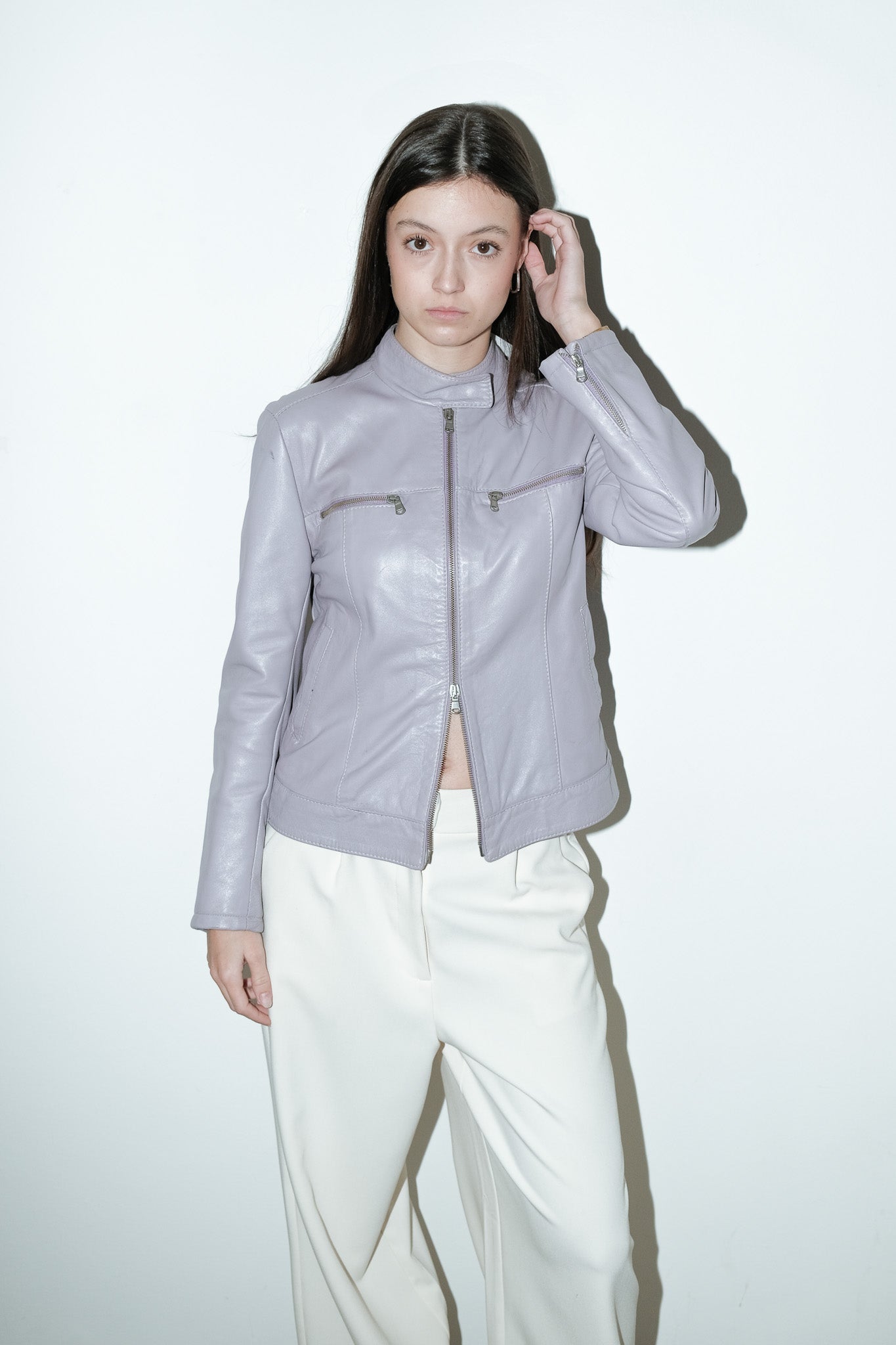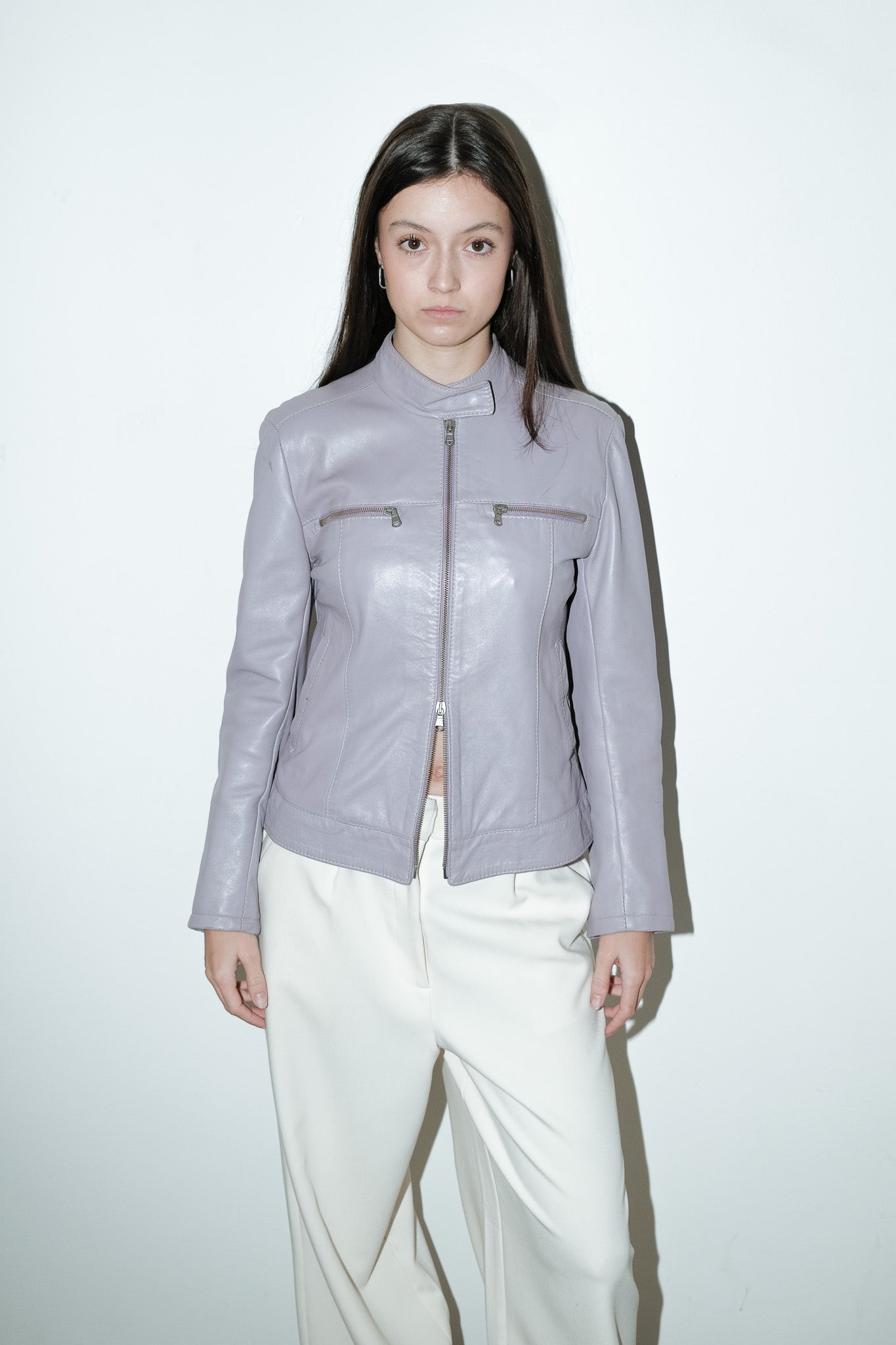 vintage 100% leren jack in lila met dubbele rits