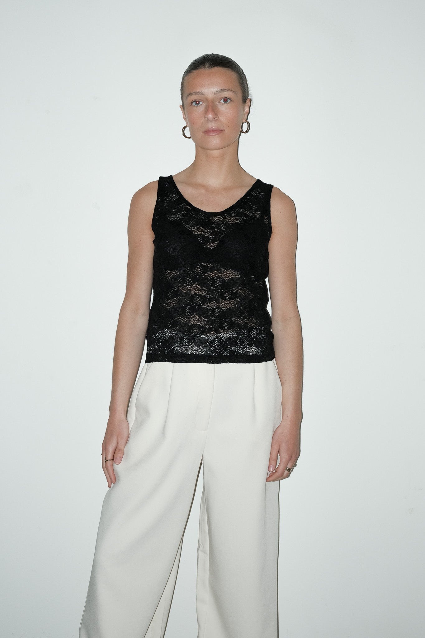 vintage zwarte kanten stretch top