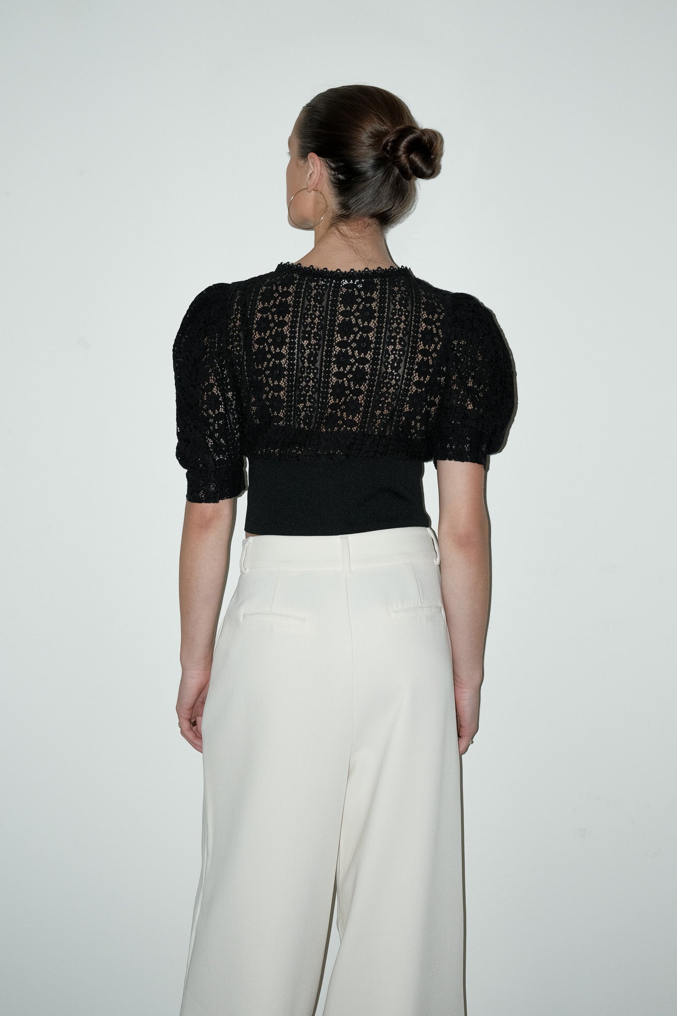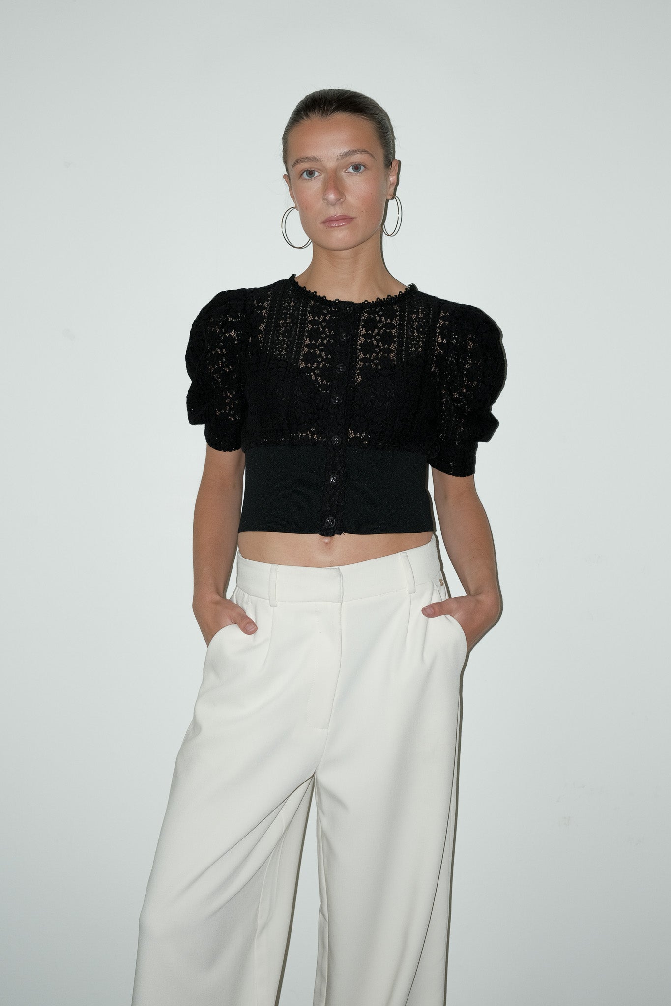vintage kanten croptop met getailleerde taille en pofmouwen