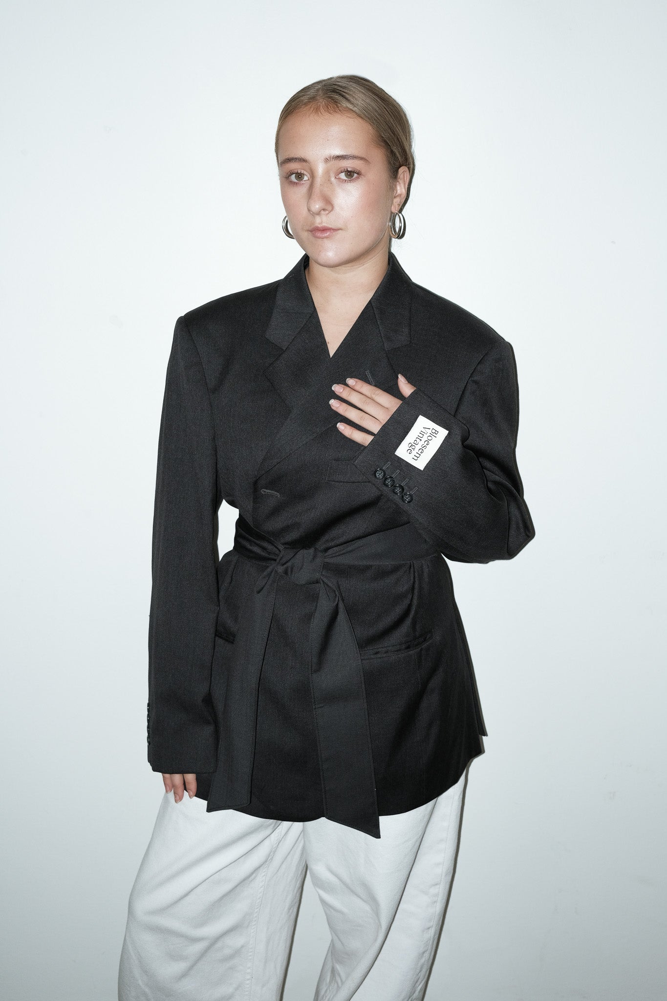 vintage reworked blazer met matchende belt, gemaakt van vintage herenpantalons. handgemaakt in het Bloesem Vintage atelier.