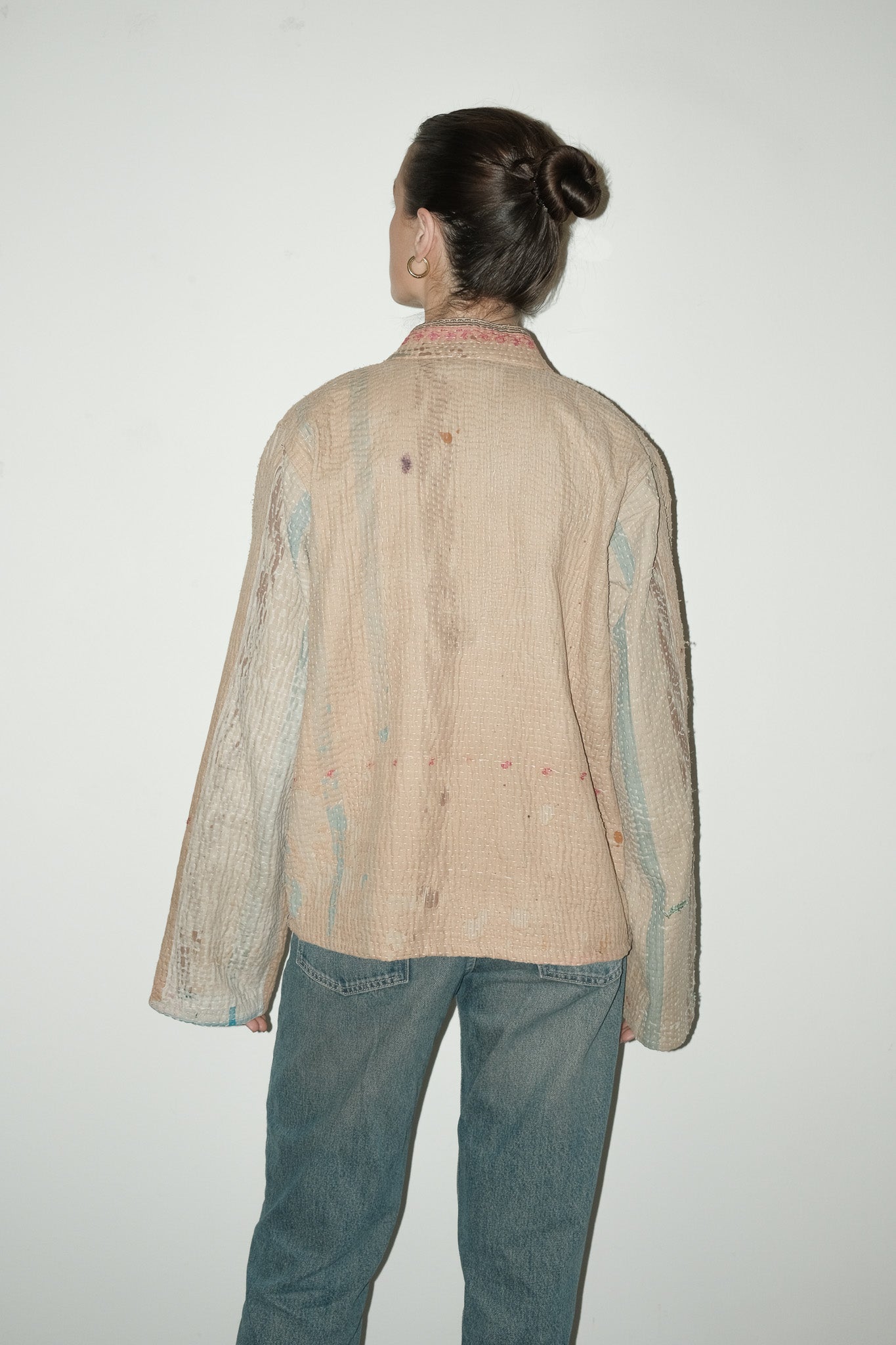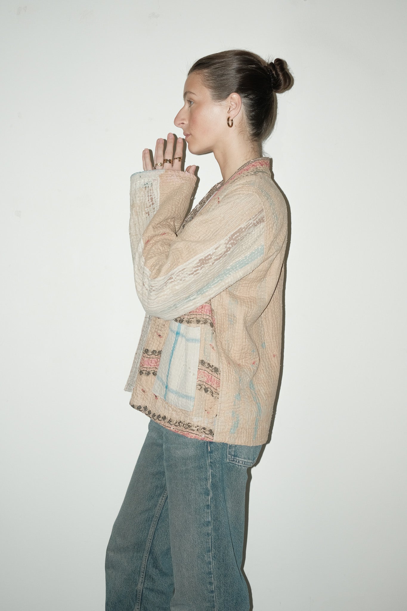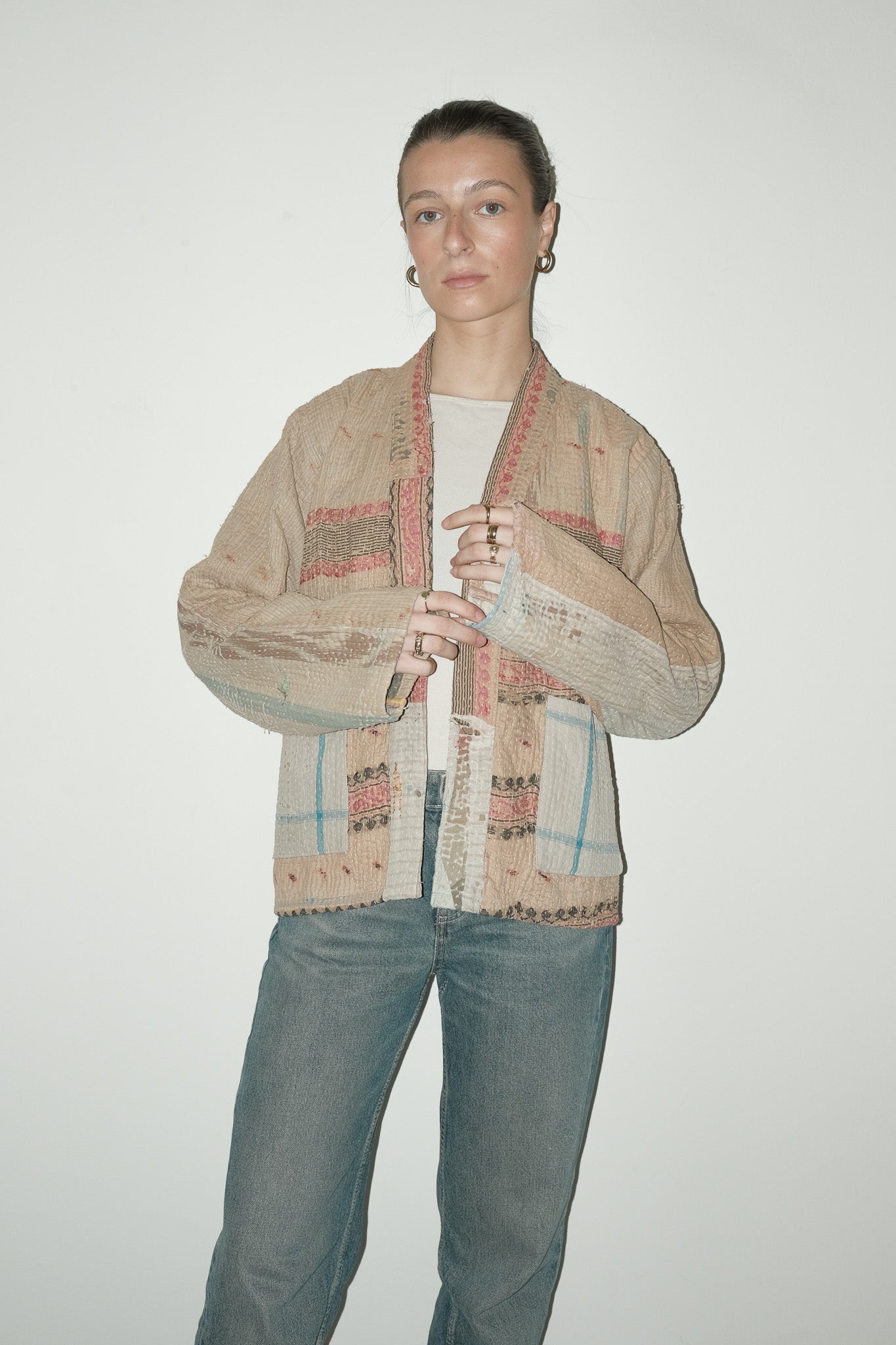 vintage reworked jacket met print, gemaakt van een vintage deken in ons eigen atelier