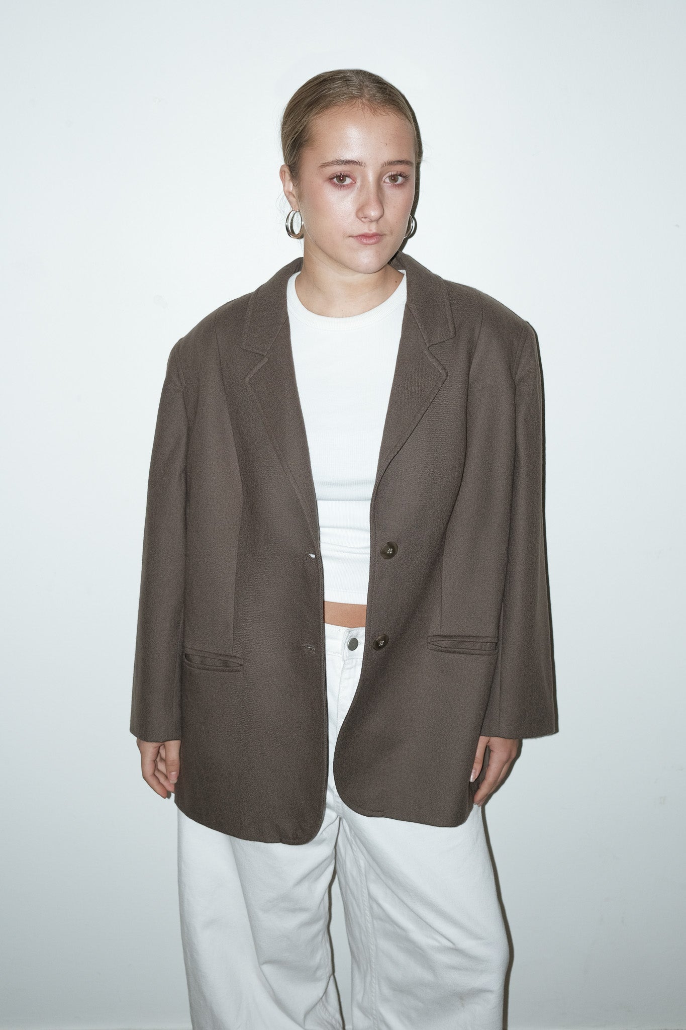 vintage taupe wollen tussenjasje. deze mouwen zijn wat korter dus niet geschikt als je heel lang bent.