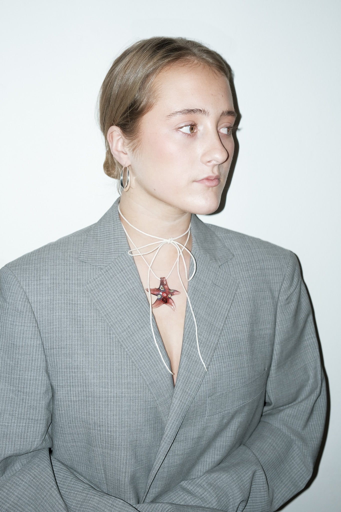 vintage lila Murano glas ster bedel aan creme katoenen veter