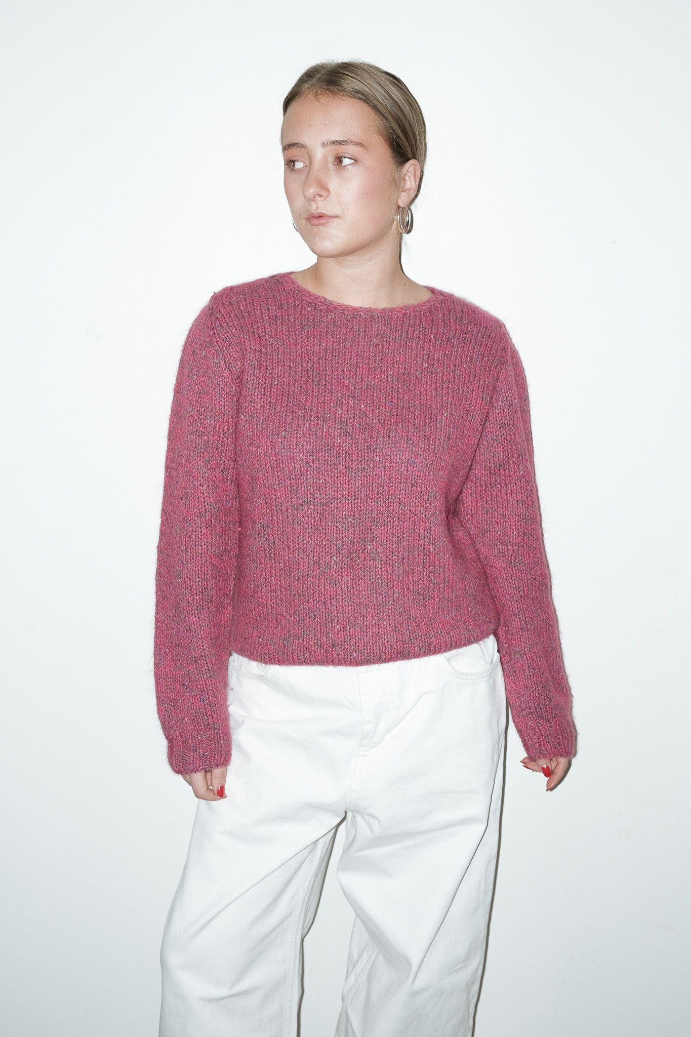 vintage roze gemêleerde mohair-blend gebreide trui