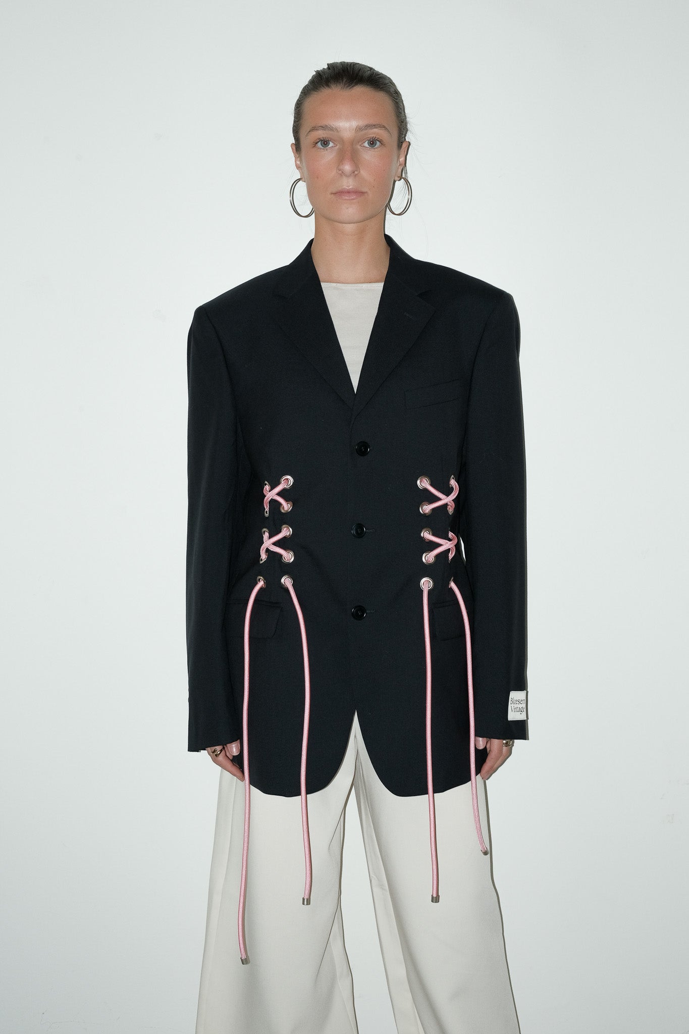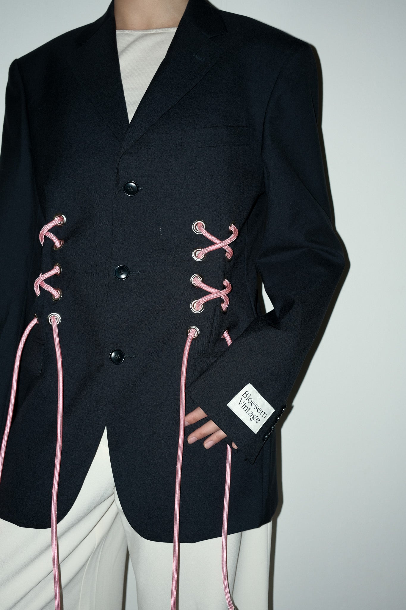 vintage reworked blazer met RVS & paracord detail. kies zelf je kleur paracord en wij stellen 'm voor je samen.