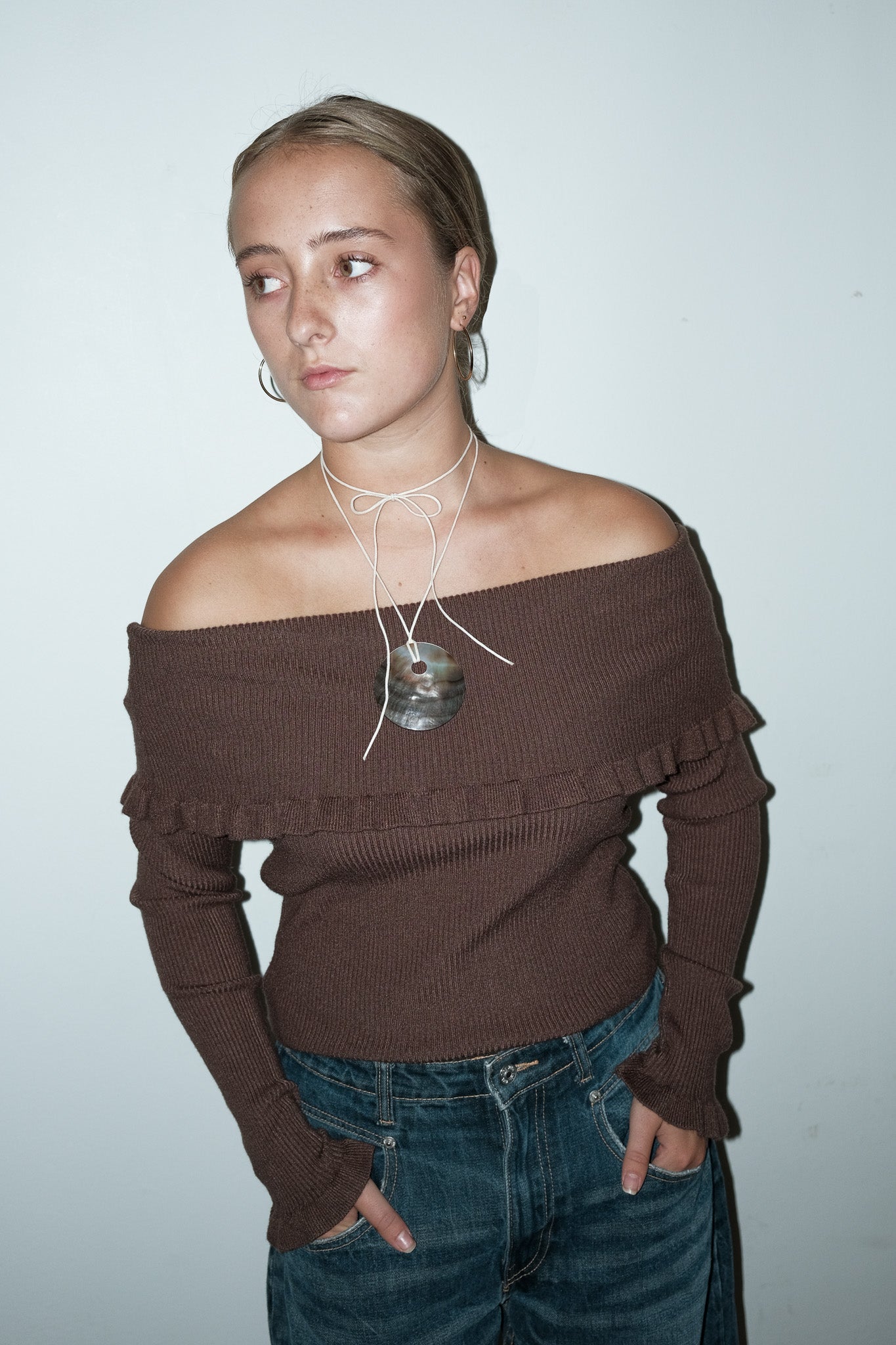 schelpmateriaal ketting met grote bedel en katoenen veter